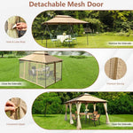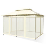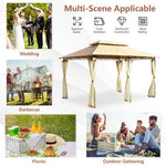 ● Easy Installation: The gazebo will be delivered with an easy-to-follow instruction and complete accessories and every part is clearly marked. So you can easily finish the assembly without too much time or effort. And we recommend that you use the ground stakes and wind ropes which are already in the package when installing the gazebo. Color: Beige/Tan/Gray Material: Steel Polyester Fabric Overall dimension: 13 x 10 x 9 ft (L x W x H) Dimension of each mesh piece: 5.7 x 6 ft (L x W) Net weight: 60.5 lbs Package includes: 1 x Patio gazebo 6 x Mesh nets 1 x Instruction