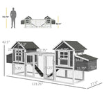 124" Dual Chicken Coop Wooden Large Chicken House Rabbit Hutch Hen Poultry Cage Backyard with Outdoor Ramps and Nesting Boxes