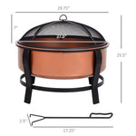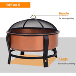 30 Inch Outdoor Fire Pit, Round Outdoor Wood Burning Fire Pit with Spark Screen for Embers