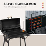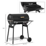 30" Portable Charcoal Barbecue Grill with Wheels, Outdoor Barbecue with Adjustable Charcoal Rack & Storage Shelf for Camping Picnic, Black
