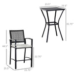 Our outdoor bar set features a high table and two armchairs.