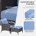 5 Pieces Rattan Wicker Lounge Chair Outdoor Patio Conversation Set with 2 Cushioned Chairs, 2 Ottomans & Glass Table, Grey