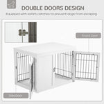 Dog Crate Furniture Table, Dog Cage End Table with Double Doors & Locks, for Small and Medium Dogs, White