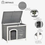 Foldable Wooden Dog House Raised Puppy Cage Kennel Cat Shelter w/ Lockable Door Openable Roof Removable Bottom for Small and Medium Pets Grey