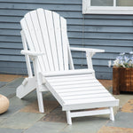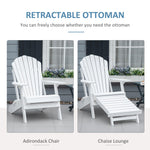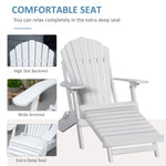 Folding Adirondack Chair with Ottoman, Outdoor Wooden Lounger for Patio, Porch, Poolside, Garden, White