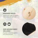Drainage Holes and Bed Liner: Allow excess water to drain out, keeping soil fresh, protecting plants from rot or mineral buildup, and making plants grow better. The non-woven lining prevents the dirt from falling through while still allowing water to drain, separating the wood from the soil and keeping the wooden garden planter in excellent condition.