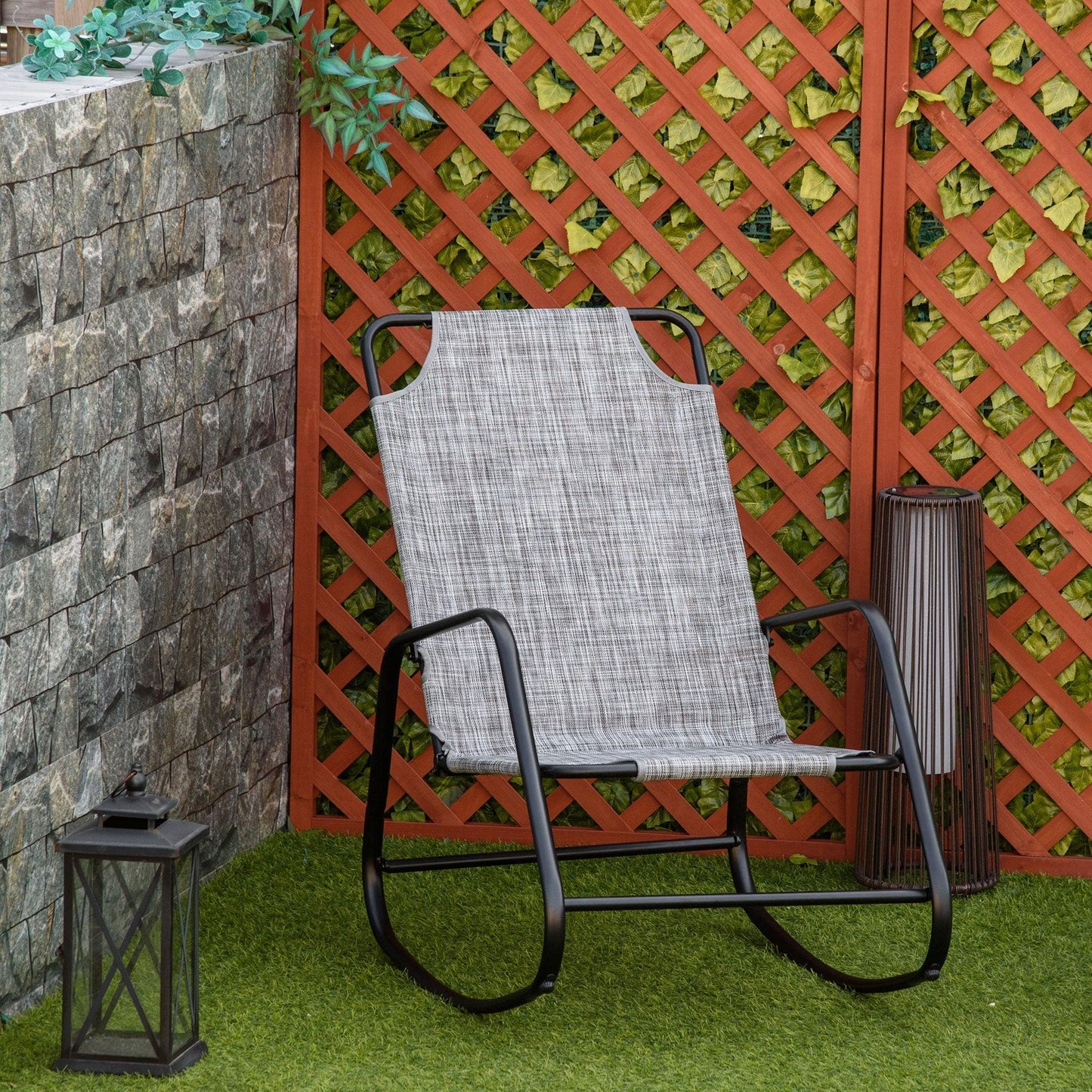 Outdoor Indoor Sling Fabric Rocker for Patio, Balcony, Porch, Grey