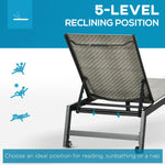 - - Five-Level Adjustable Recline: This patio lounge chair adapts to your needs with five adjustable backrest positions. You can sit up, recline, or lay flat so you can enjoy sunbathing / tanning, reading books, or taking a nap.