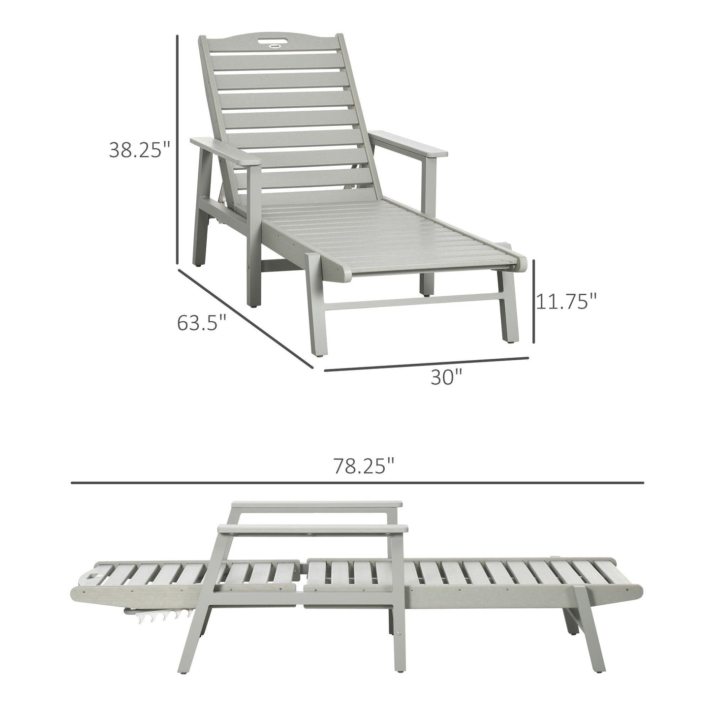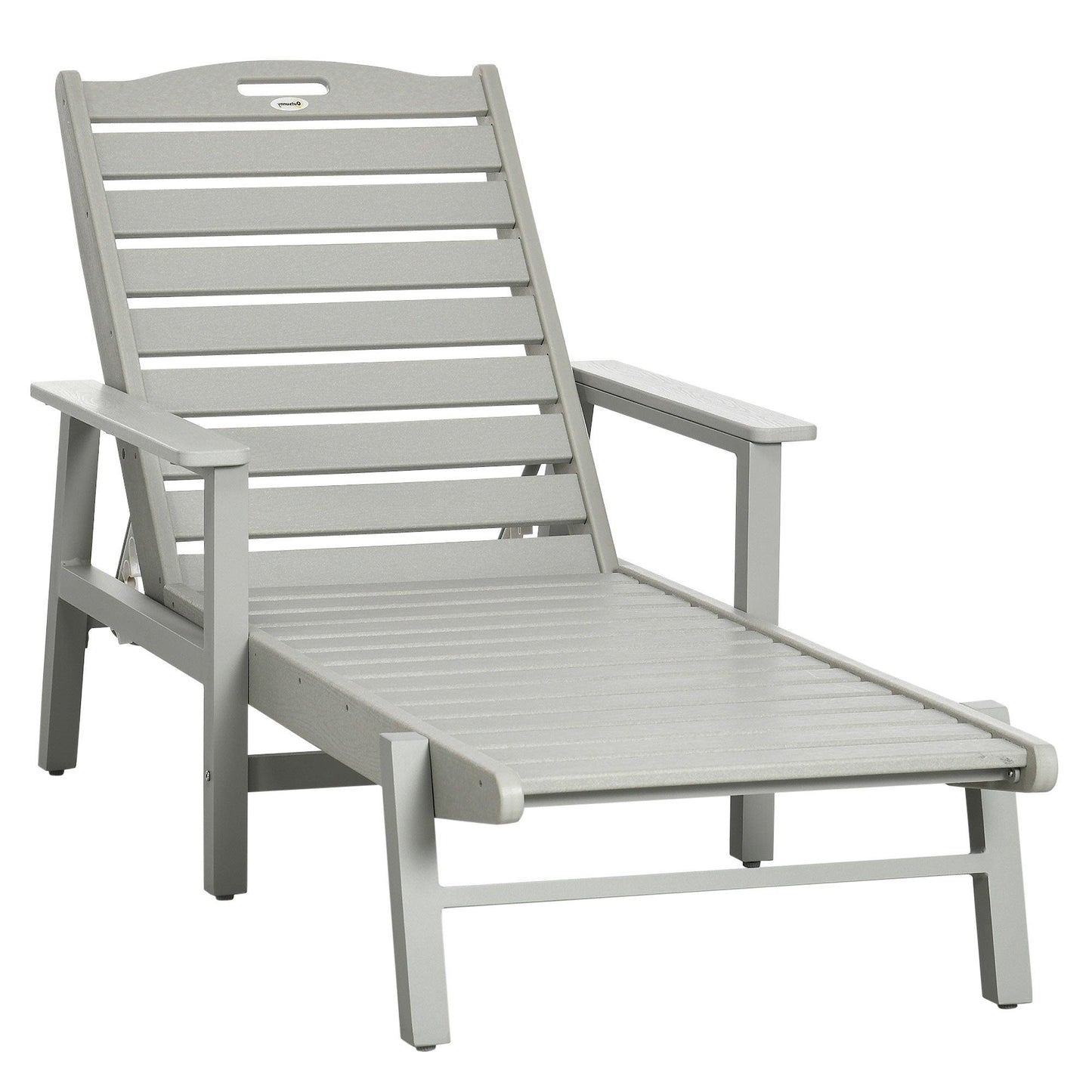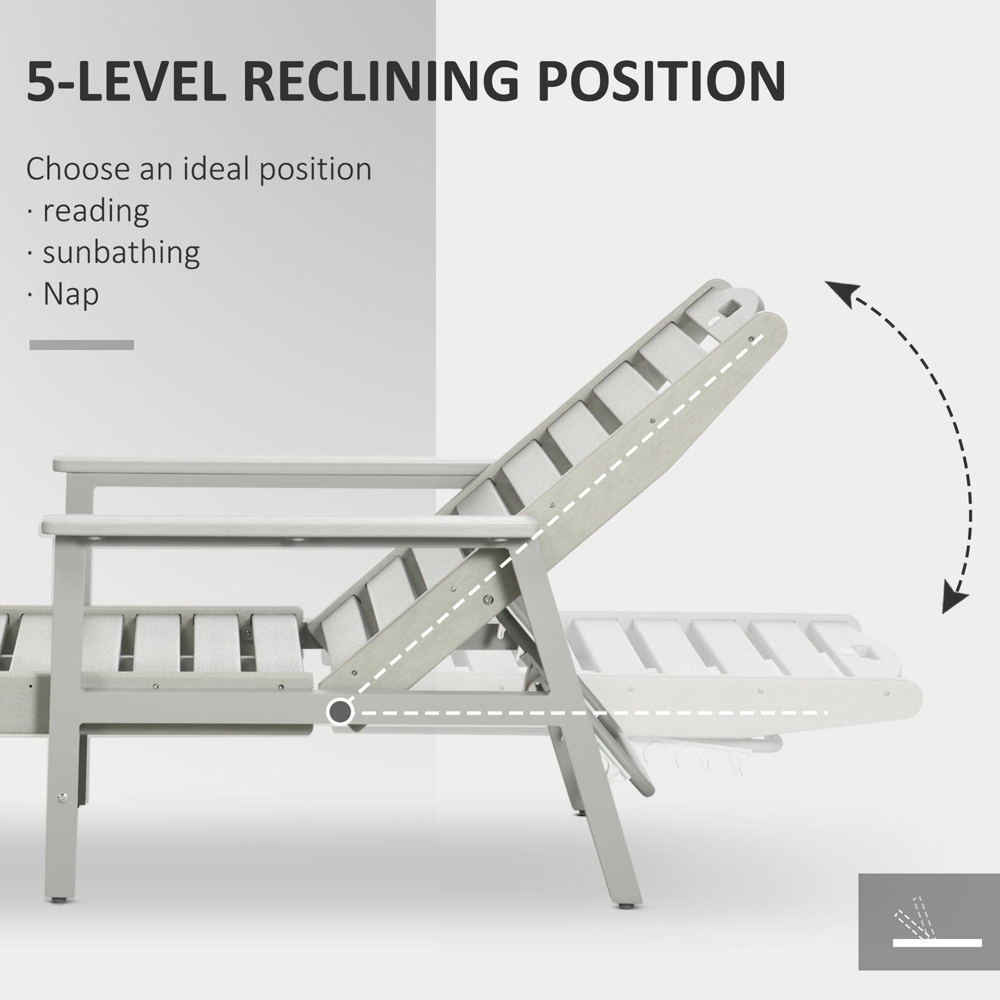 Outdoor Lounge Chair, Aluminum Recliners Tanning Chair with 5-Level Adjustable Backrest, Slatted HDPE Seat and Backrest for Outdoor