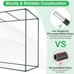 ● Sturdy and Reliable Construction: In contrast to normal metal poles that are easy to rust and easy to burn plants this greenhouse is constructed of rustproof PE-coated metal poles which could withstand high temperatures and resist weather damage ensuring long-term outdoor use.