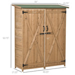 Outdoor Storage Cabinet Wooden Garden Shed Utility Tool Organizer with Waterproof Asphalt Rood, Lockable Doors & 3 Tier Shelves, Natural