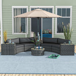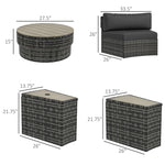 Outsunny 8 Piece Patio Furniture Set with 4 Rattan Sofa Chairs & 4 Tables with Storage & Umbrella Hole, Mixed Gray