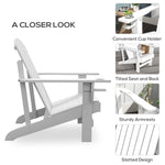 Modern Adirondack Chair, with Built-in Cupholder, Supports Up to 330 lbs, Classic Log Lounge for Patio, Garden, Lawn, White