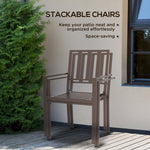 - - Stackable Patio Chairs: Built to store compact, our stackable patio chairs save space to keep your patio clean, and allow for an outdoor dining space that sets up in seconds.