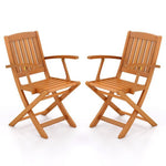 Patio Wood Folding Chair Set of 2 with Armrests and Slatted Seat