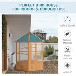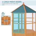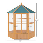 PawHut 69" Large Wooden Hexagonal Outdoor Aviary Flight Bird Cage With Covered Roof