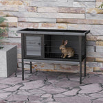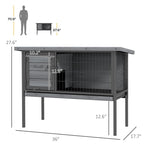 PawHut Wooden Rabbit Hutch Elevated with No Leak Tray, Openable Roof for Indoor/Outdoor, Gray