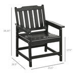 Plastic Patio Chairs, Outdoor Dining Chair with Armrests and Slatted Back, Outdoor Armchair for Lawn, Garden, Poolside, Backyard, Black