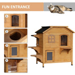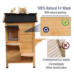 Wooden 2-Story Outdoor Cat House, Feral Cat Shelter Kitten Condo with Escape Door, Openable Asphalt Roof and 4 Platforms, Natural